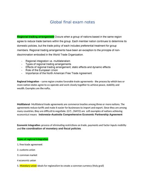 global final exam study guide answers