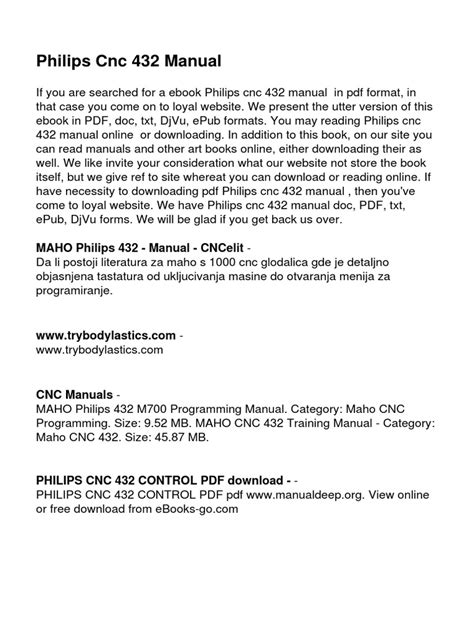 In order to read or download philips cnc 432 manual ebook, you need to create a FREE account.